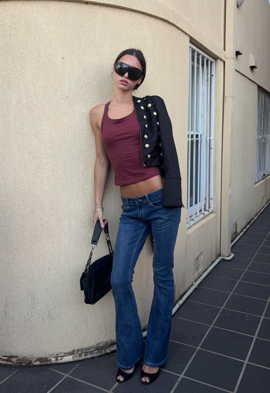 Model is 175cm tall and wears a Small